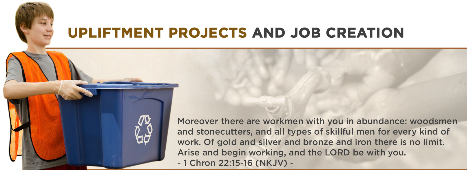 The King David Foundation will actively address the upliftment of under-privileged communities to ensure that all the needs of individuals are addressed - mentally, physically, emotionally and spiritually. We will also focus on the community environments and work to purify the water sources, air and soil and promote recycling programs.
